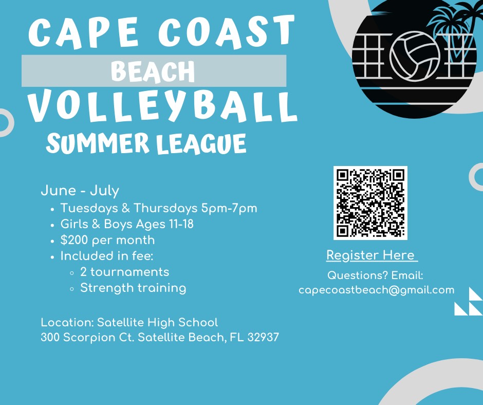 Training will be at Satellite Beach High School Sand Courts on Tues. & Thurs. 5:00 - 7:00 PM